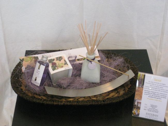 Cesta de aromas para el hogar de la conocida firma francesa Esteban, compuesta por vela perfumada, mikado, inciensos y quemador. Sorprenda con un original e inesperado regalo. Aromas disponibles: Melocotón de viña, frutos rojos, pomelo, Higo tardío y piña de pino.